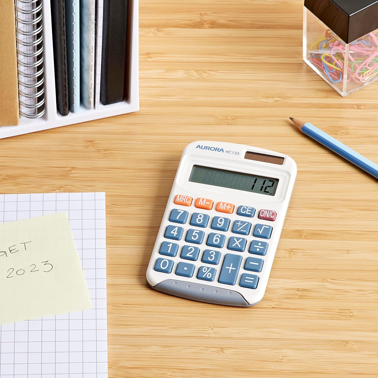 Aurora HC133 8-Digit Solar + Battery Handheld Calculator