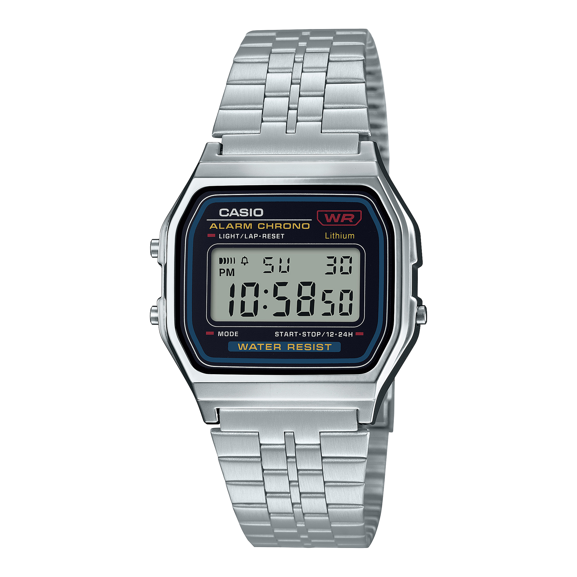 Casio Unisex Watch Vintage Collection Digital, Black Dial Silver Stainless Steel Band, A159WA-N1DF