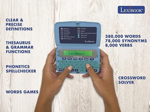 LEXIBOOK, The Collins English Dictionary, Definitions, Thesaurus, Grammar, Phonetic Spellchecker, with Battery, Blue/Grey, D650EN
